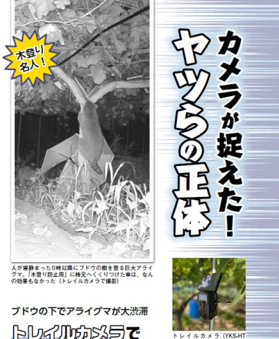 ブドウが何者かに食われてしまい、トレイルカメラを買って畑に設置してみたら、夜にアライグマがゾロゾロやってきて樹を登ってきていた!というのが2025年9月号p42の記事です。その驚きの光景の一部が、表紙の写真にもなっています。まさに「カメラが捉えた! ヤツらの正体」です。